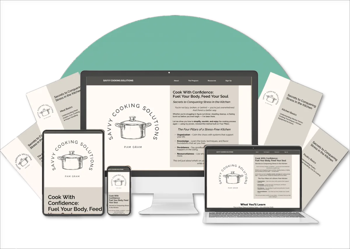 Whether you're stuck in a cooking rut, constantly second-guessing yourself, or just plain overwhelmed — this program gives you the structure, tools, and support to cook with ease and creativity.